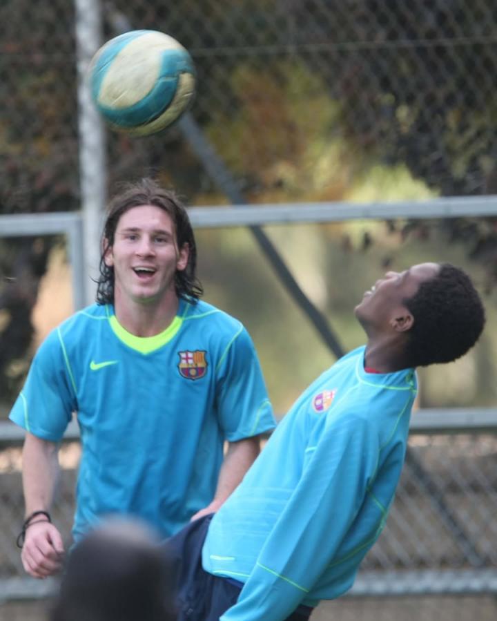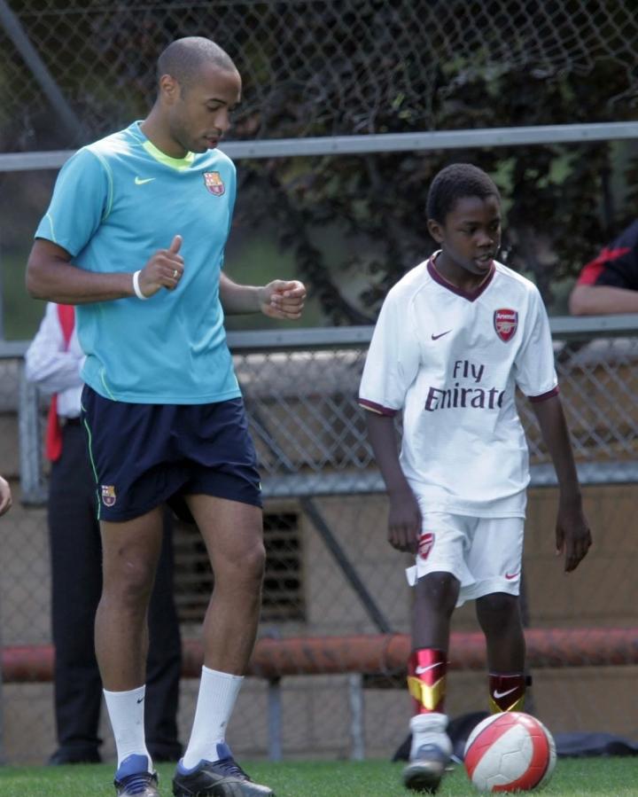 2008年,身穿阿森納球衣的馬庫(kù)斯-圖拉姆和亨利在巴薩訓(xùn)練基地。