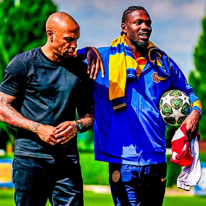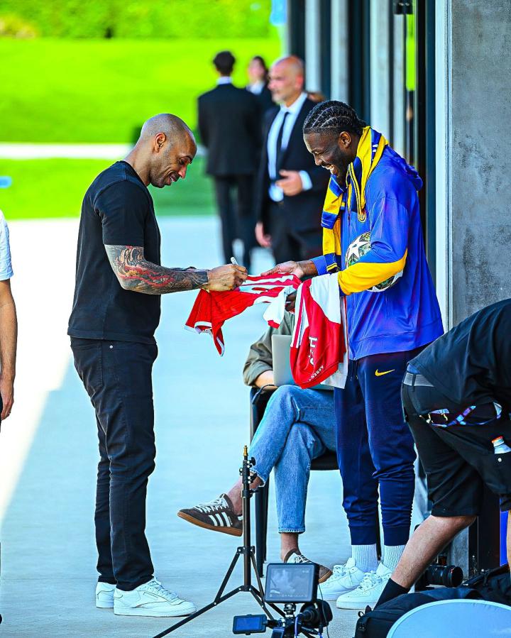 2025年5月27日,亨利造訪國(guó)米歐冠基地,馬庫(kù)斯-圖拉姆拿著阿森納球衣給叔叔簽名。